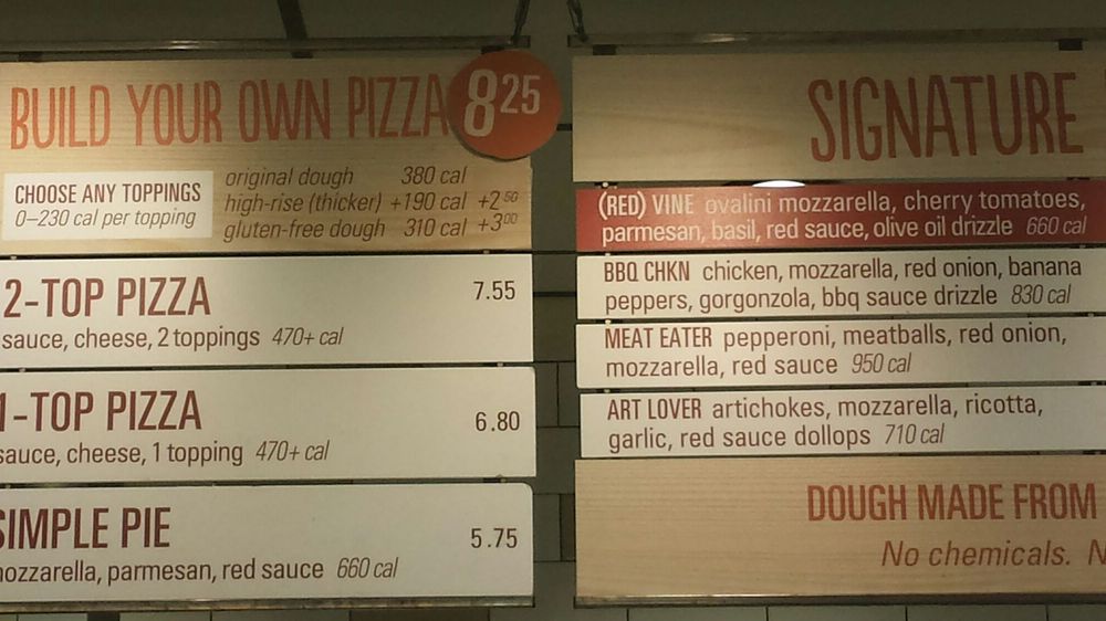 Our Chef's signature recipe includes cauliflower (gf) crust, red sauce, mozzarella, ricotta, artichokes, black olives, onions, spinach.
